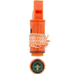 - Unscrew the compass, and it reverses to a signal mirror, also for matches a 3/4" long sparker